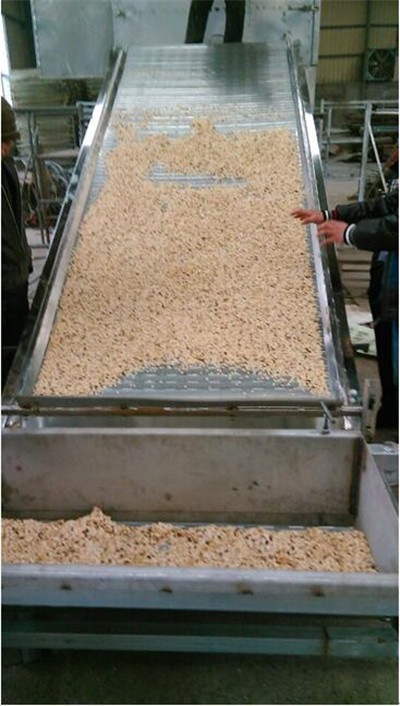 該機(jī)是由三段串聯(lián)組成,可以控制好瓜子在各個(gè)干燥階段需要適用的溫度,使用時(shí)首先將潮濕的瓜子均勻的鋪在干燥機(jī)前段的網(wǎng)帶上,進(jìn)入這個(gè)階段后,瓜子會(huì)受到熱風(fēng)向上向下的交替吹,這樣可以將瓜子均勻的加熱,加快加熱速度,保證了瓜子的質(zhì)量.采用導(dǎo)熱油加熱系統(tǒng),散發(fā)出的風(fēng)溫度高,更適用于瓜子的干燥特點(diǎn),在干燥的過(guò)程中,網(wǎng)帶的串聯(lián)結(jié)構(gòu)可以使瓜子均勻的受熱,設(shè)備還有冷卻段,這樣吹干的瓜子可以直接進(jìn)入包裝程序,提高了工作效率.目前瓜子幾乎是每家每戶食用的食品,因此瓜子烘干機(jī)的應(yīng)用會(huì)越來(lái)越廣泛,前景會(huì)越來(lái)越好.