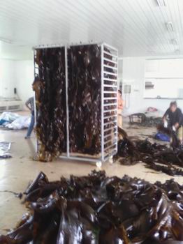 我國海岸線延綿上萬公里,海帶種植面積很大,但如何將天然鮮海帶變成干海帶,幾乎是靠天氣,而且曬出的干海帶的質量也很不穩定;這幾年,我公司在山東威海某海產品科技公司的協助下,研制開發了一種天然鮮海帶烘干機,它幾乎可以添補天然原始海帶烘干的空白。